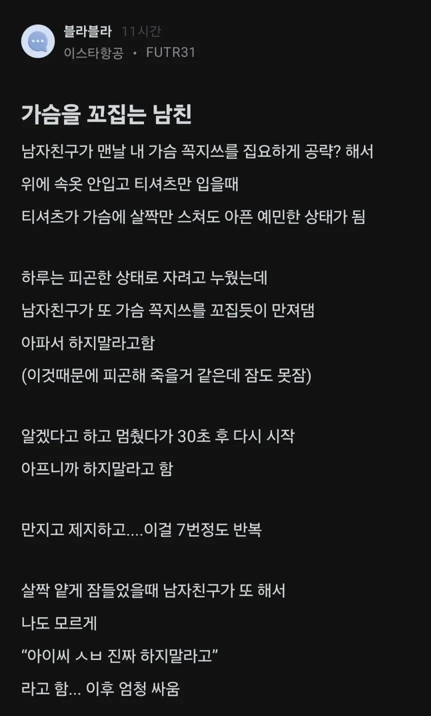 남친이 맨날 꼭ㅈ를 아프게 ㄲ집어대서 ㅈ같음.. 12월 11, 2025 by 관리자 양반 이 글 공유하기: 페이스북에 공유하려면 클릭하세요. (새 창에서 열림) Facebook 클릭하여 X에서 공유 (새 창에서 열림) X 이것이 좋아요:좋아하기 가져오는 중... 관련